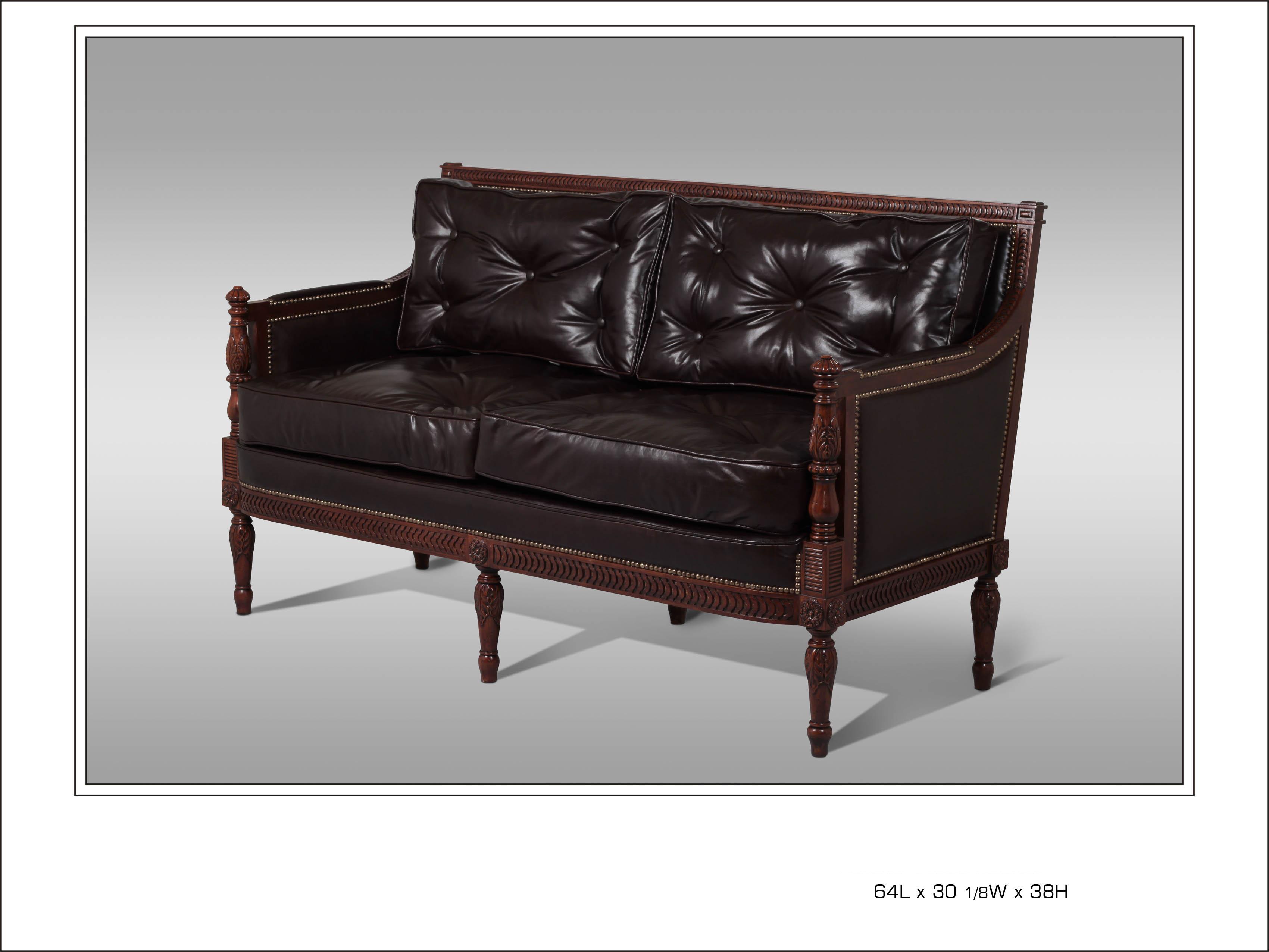 A Handcrafted Mahogany 2 Seater Sofa with Tufted Italian Leather Loose Cushion and Brass Nails