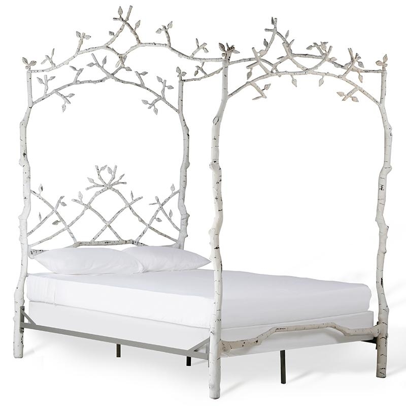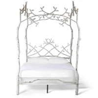 Hand wrought iron bed with twig and branch canopy in Queen size. Available in numerous finishes.