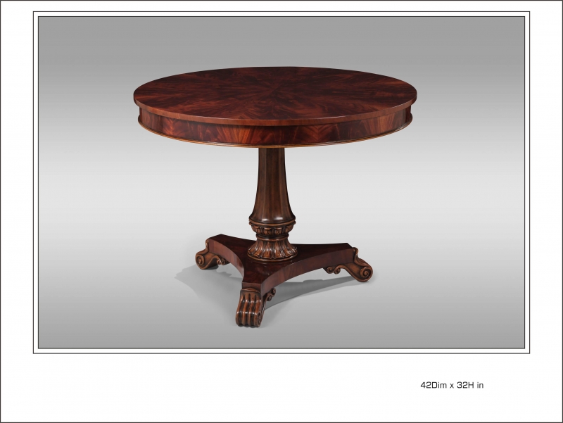 Crotch Mahogany Center Table with Rub Through Faded Carving