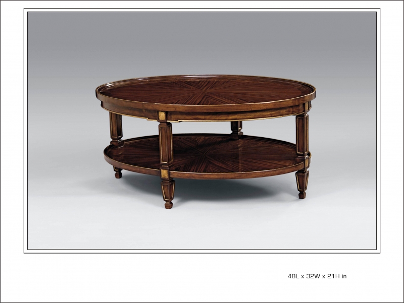 Rosewood Oval Cocktail Table with Antique Gilded Accents