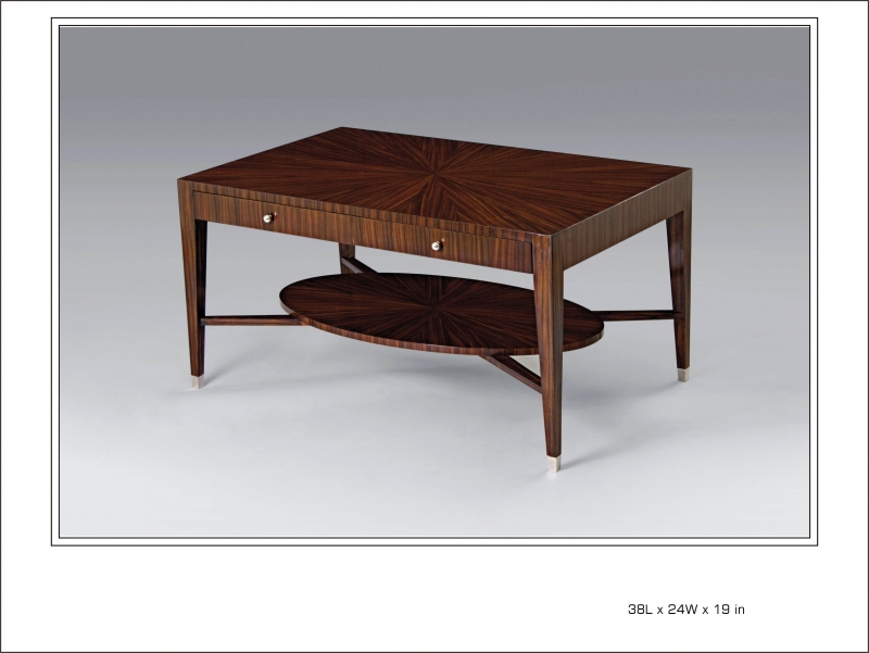 Rosewood Rectangular Cocktail Table with Nickel Plated Brass Accents