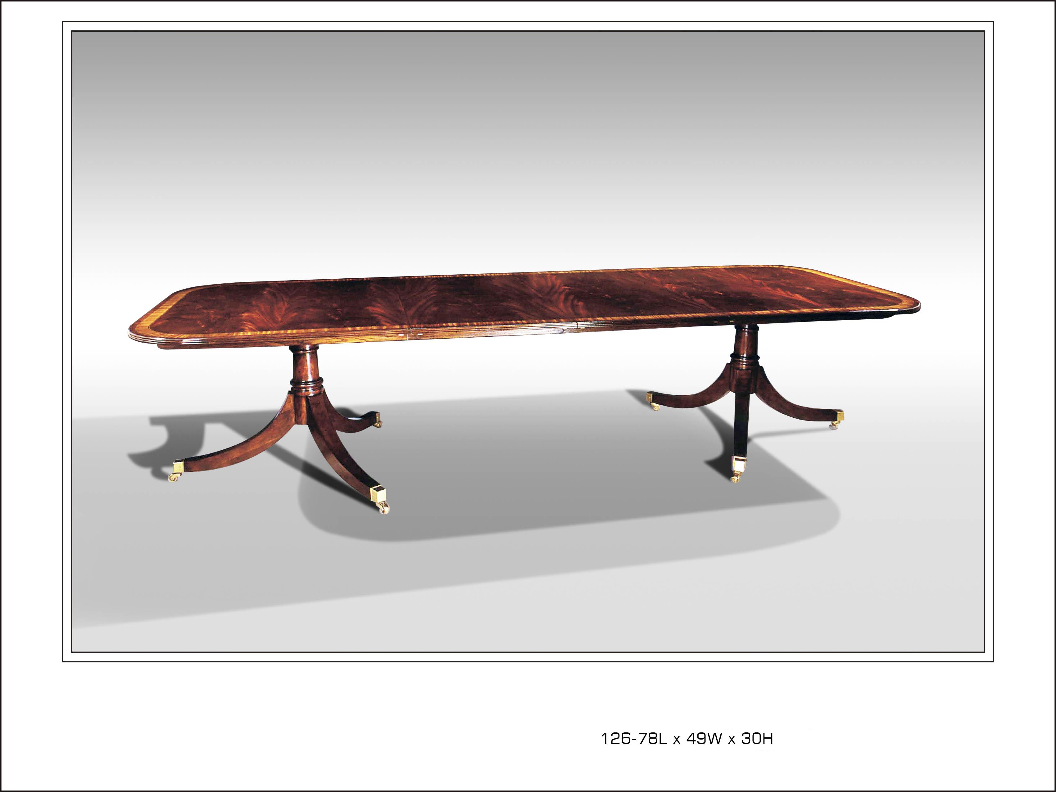 Crotch Mahogany Reeded Dining Table with Movengue Banding and Brass Castor Feet
