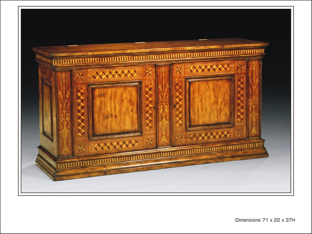 Plasma Console with electric lift. Beatifull marketry inlays of exotic woods adorn the front. Holds a 50" LED screen