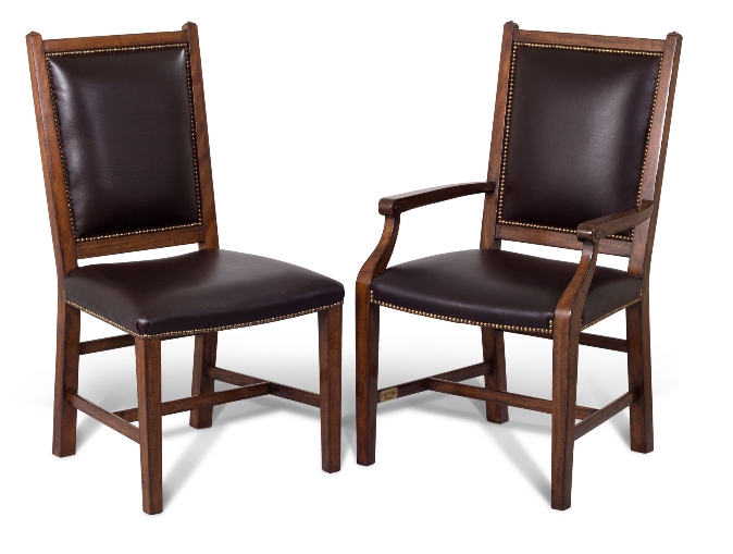 Arm Chair with Antique Brown Leather and Parquetry Inlayed Backs