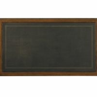Table desk with brown leather top and burnished metal legs; 1 storage drawer with wood dividers