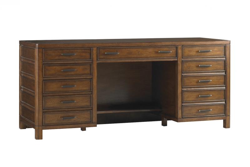 68" Credenza. Laptop docking station; data port; 5 outlet surge protector. Left side facing: 3 drawers (locking center storage drawer, 1 locking full extension file drawer will accommodate legal/letter files)