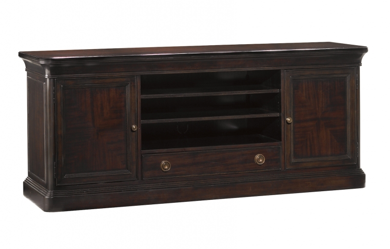 72" Media Console with 2 doors; 1 media/storage drawer; 6 adjustable shelves; 5 outlet surge protector; cord management; ventilation