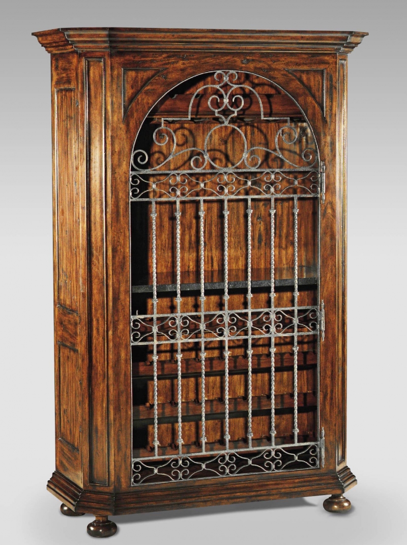 Wine Cabinet in Alder wood. Wine storage below and stone top bar above.