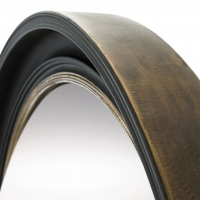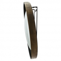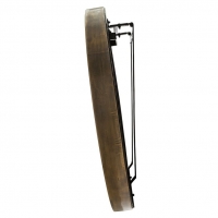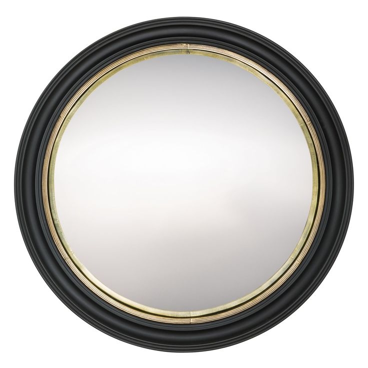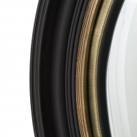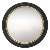Use this convex mirror where you need a big statement piece. The carved wooden frame is painted black and has as accents of antique brass clad. Security cleat hanging hardware allows for vertical display.