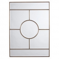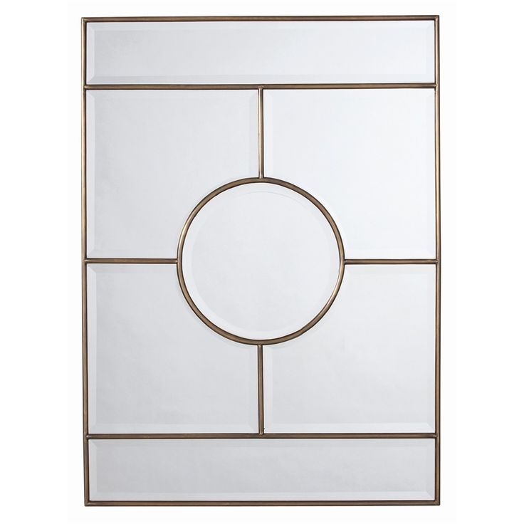 No doubt this was geometric inspired…squares, rectangles and a circle all outlined in vintage brass. The mirror is plain with bevels.