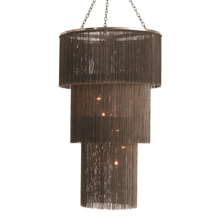 Three graduated circles draped with vintage silver chain enclose this 6 light chandelier.