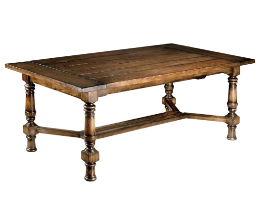Heavily distressed overall to give a weathered look & feel. Features a heavily distressed rustic finish. Includes two 20″ self storing leaves.
