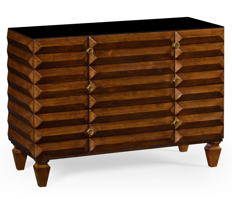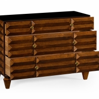 Contemporary chest of drawer, triangle shape with black glass top