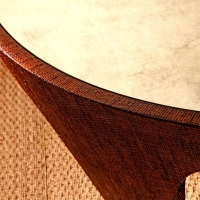 Saguran wicker available in numerous finishes, antique mirror. Shown in Walnut finish. Antique mirror top. Shown in Walnut finish.