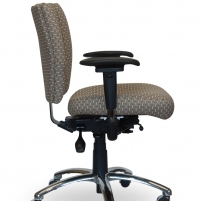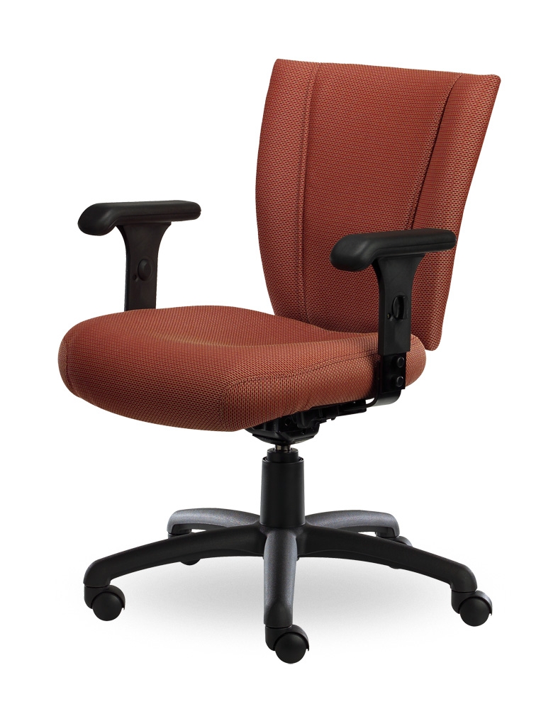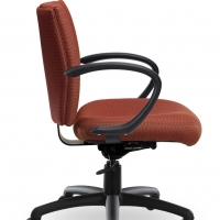Contemporary medium back task chair with multi function tilt. Available in various fabrics. Available in high back.