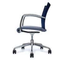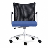Spare profile, see-through mesh back conference chair. Available with fully upholstered backrest.