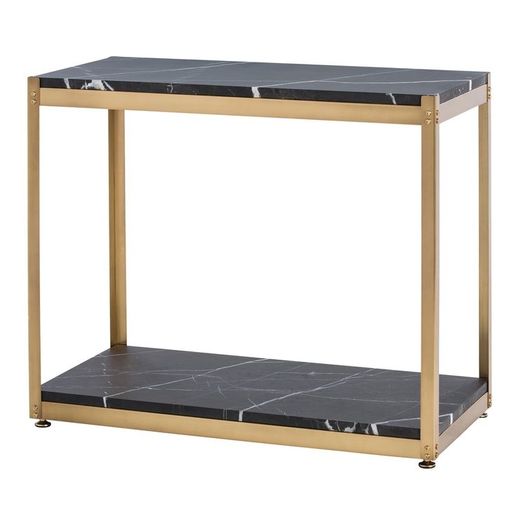 This table is industrial chic at its best. The antique brass frame and honed black marble top make this piece simultaneously modern and classic. The perfect table for an office, family room, or even as a beautiful place to stack towels in a bathroom.