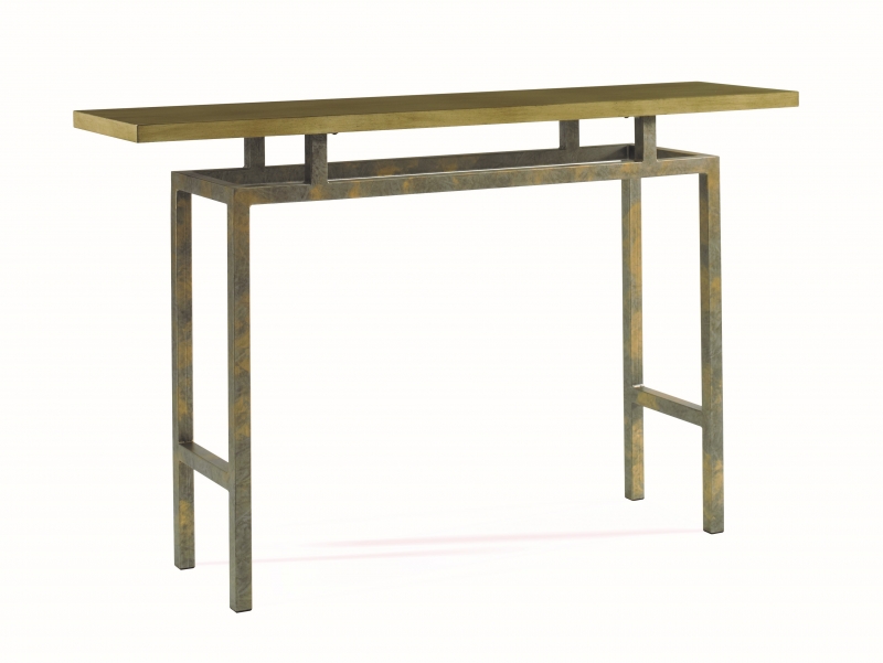 Contemporary architectural design combining mixed materials, using maple and steel in a hand applied matte platinum finish. Wood top available in custom finishes.