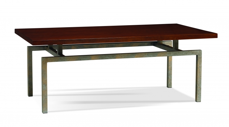 A narrow contemporary cocktail table design combining maple and square steel framing in an architectural form. The frame is standard in a matte platinum finish. Wood top available in various finishes.