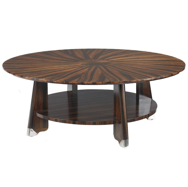 The Arts and Crafts cocktail table is made with Macassar ebony and the feet are capped in polished metal.