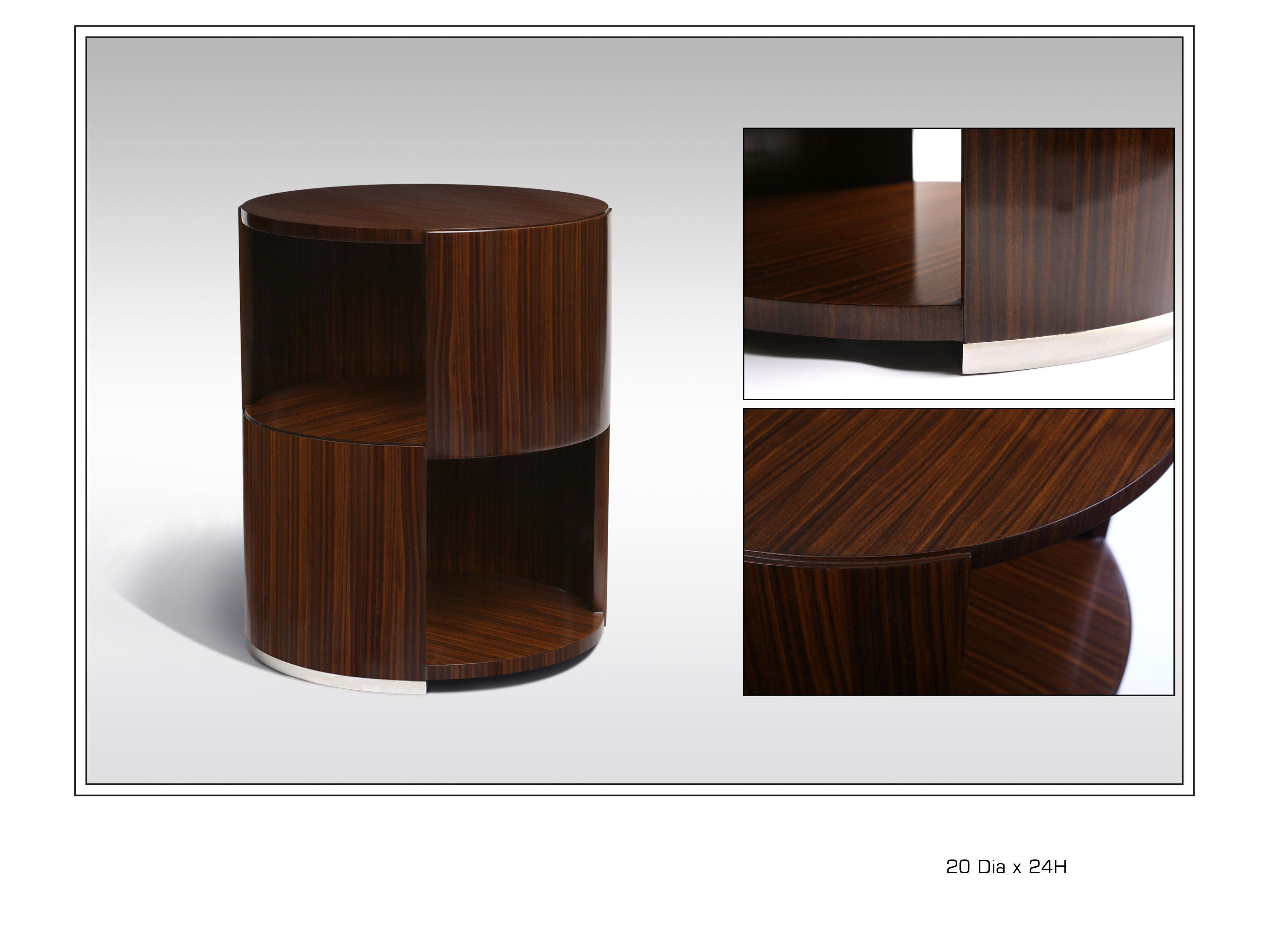Rosewood Round Side Table with Polished Stainless Steel Base