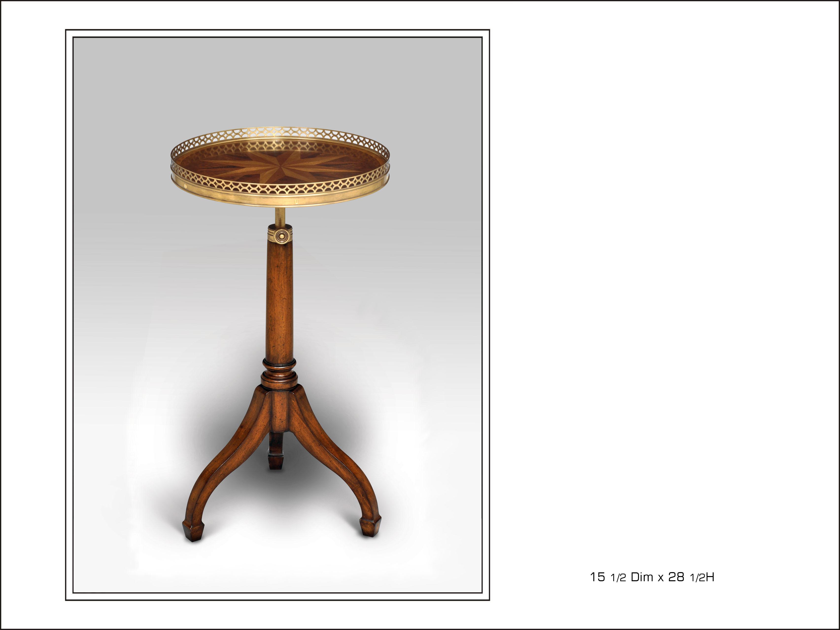 Multi Veneered Cigarette Table with Compass Designed Inlay Top with Brass Accents