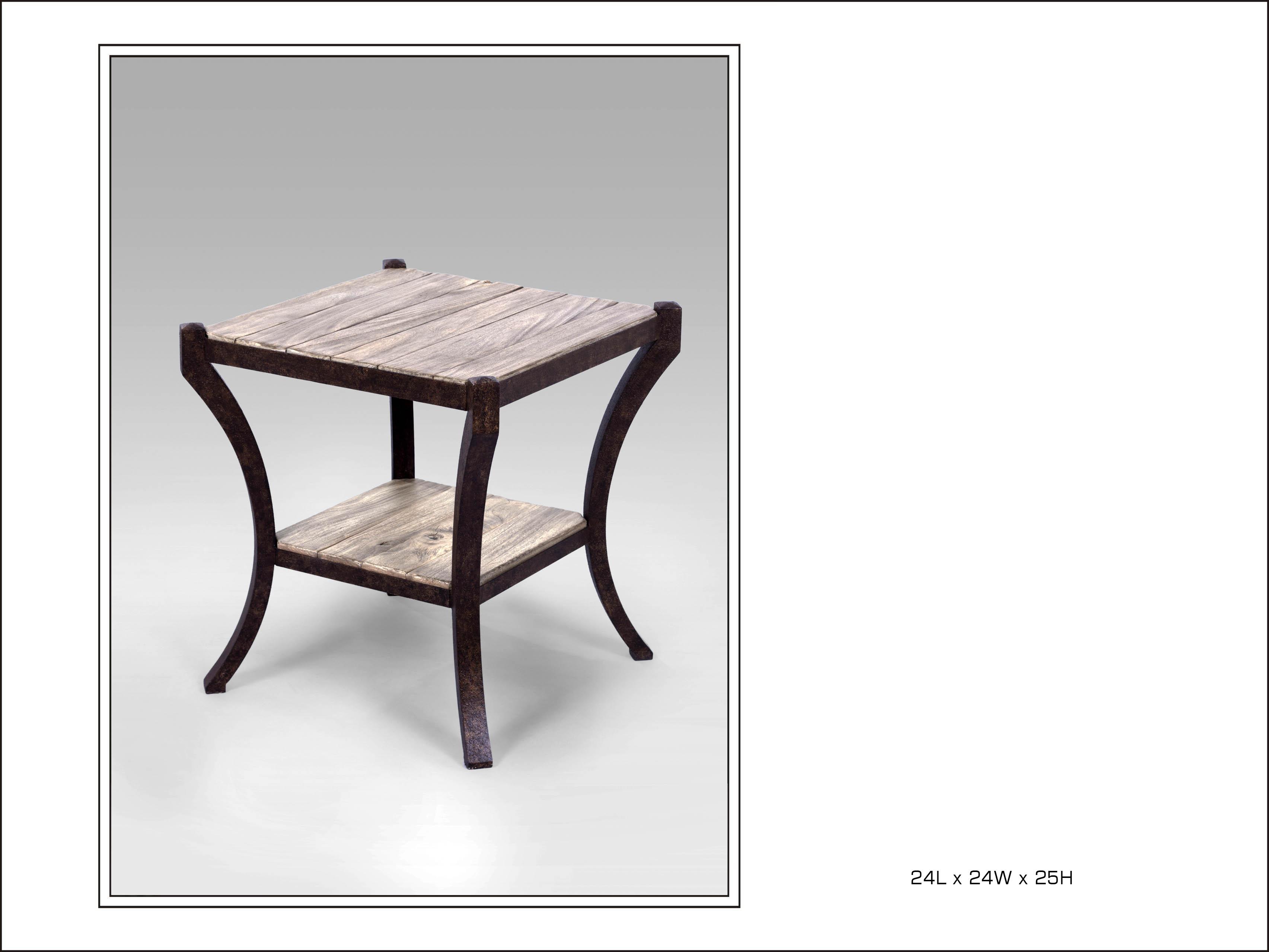 Textured Rust Finish Side Table with Weathered Sun-Bleached Wood Top