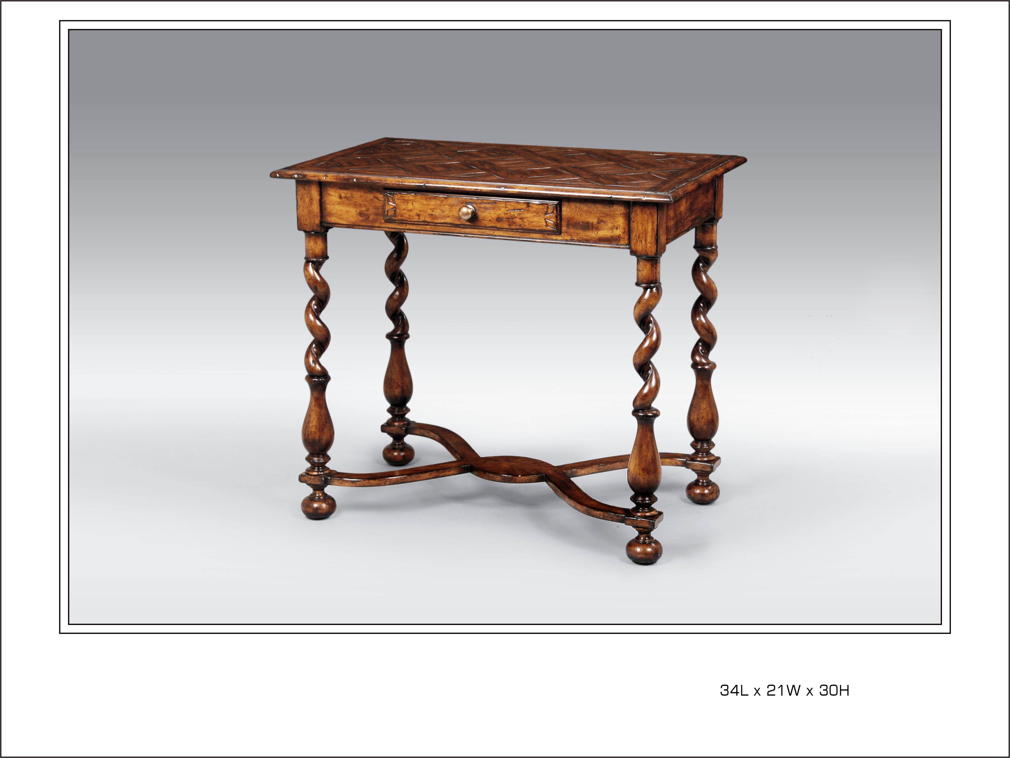 Occasional Table with Sugar Twist legs. Hand shaped Parquet top