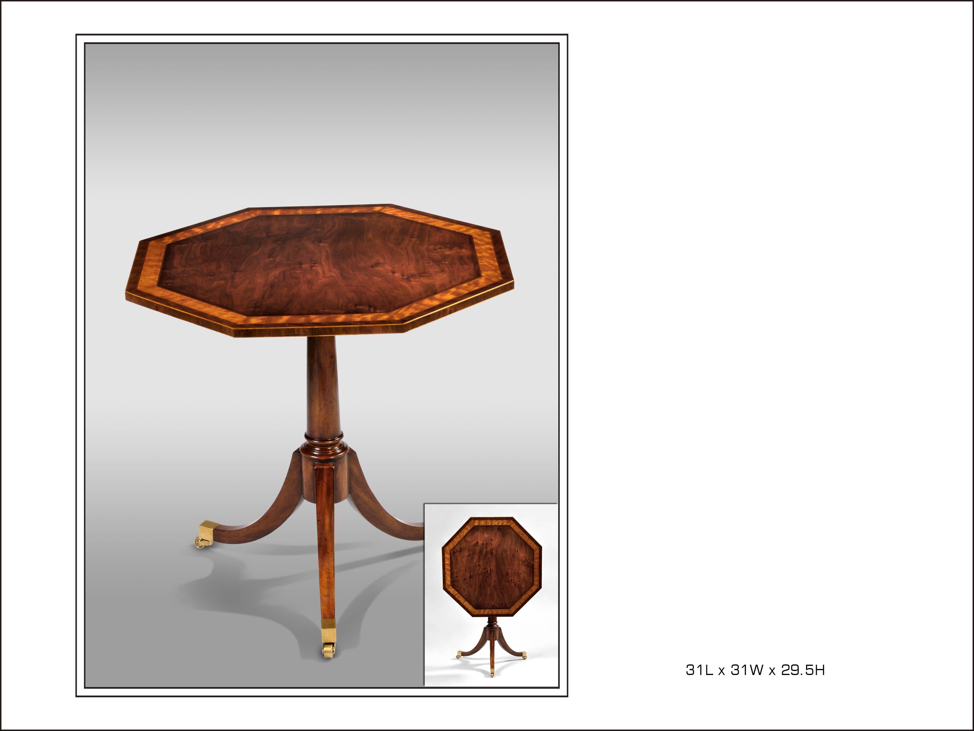 Walnut Occasional Table with Tilt Top and Brass Castor Feet