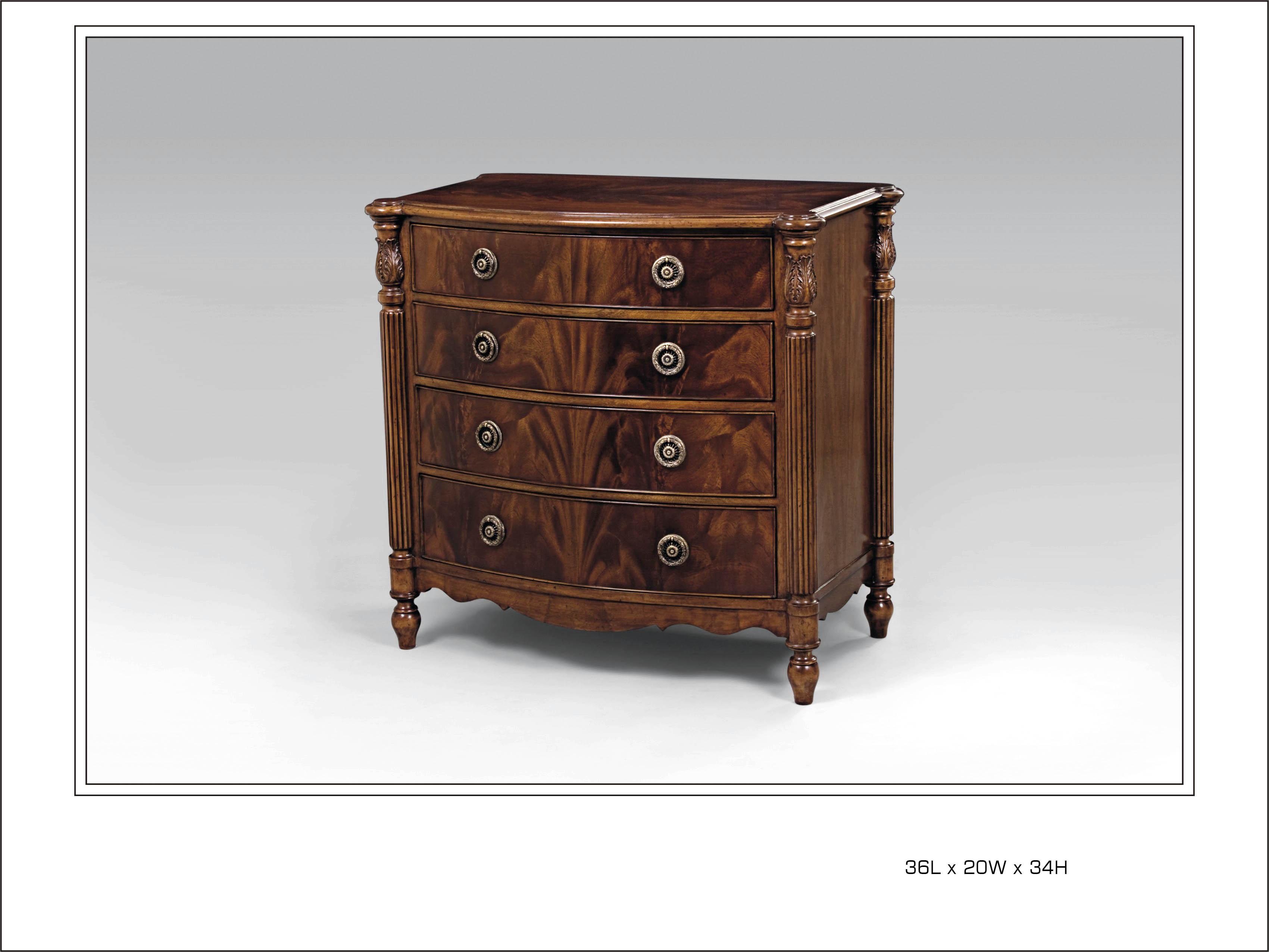 Crotch Mahogany Chest withcarved fluted pilasters and brass handles