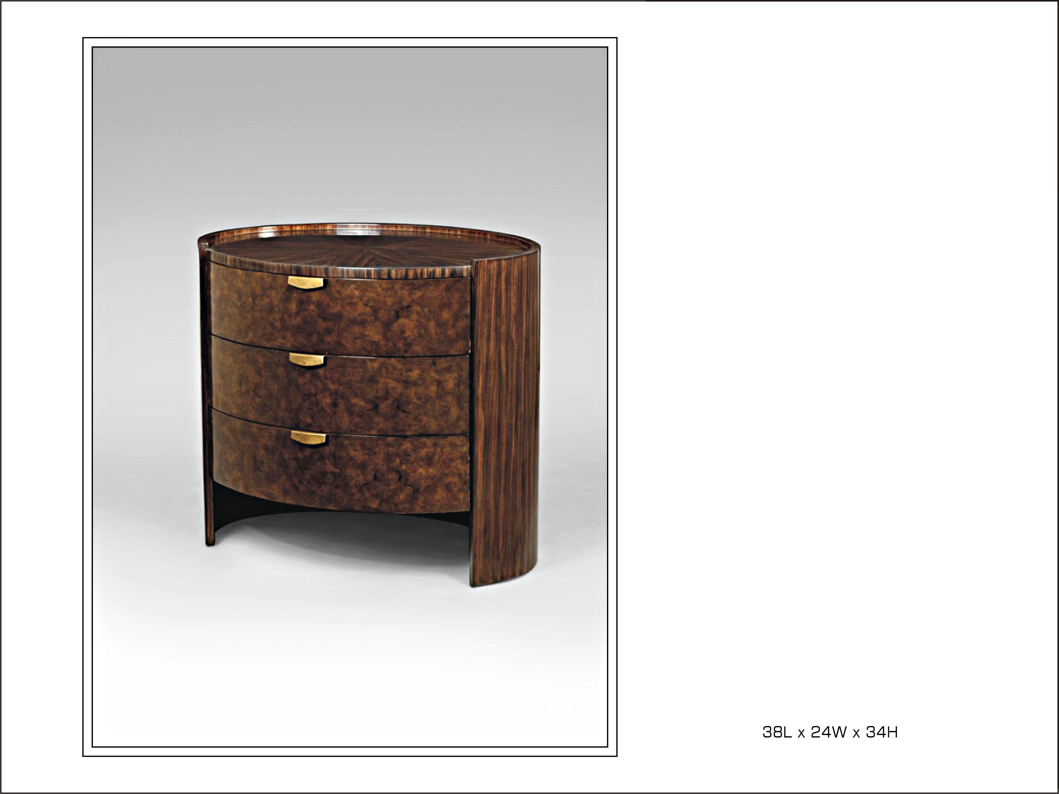 Myrtle Burl and Zebrano Night Stand with Brass Handles