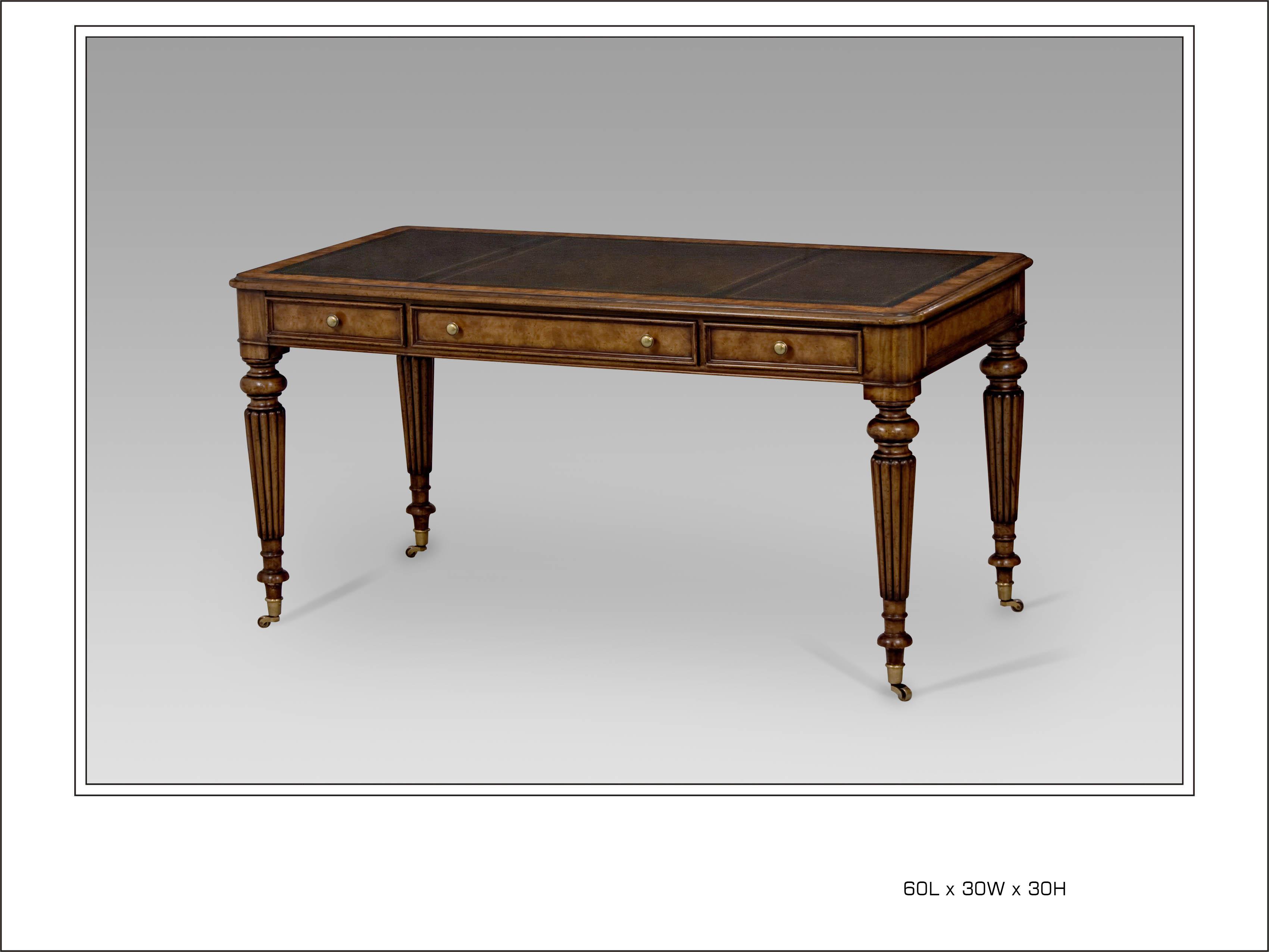 Myrtle Burl Writing Desk with Dark Antique Green Leather and Brass Accents