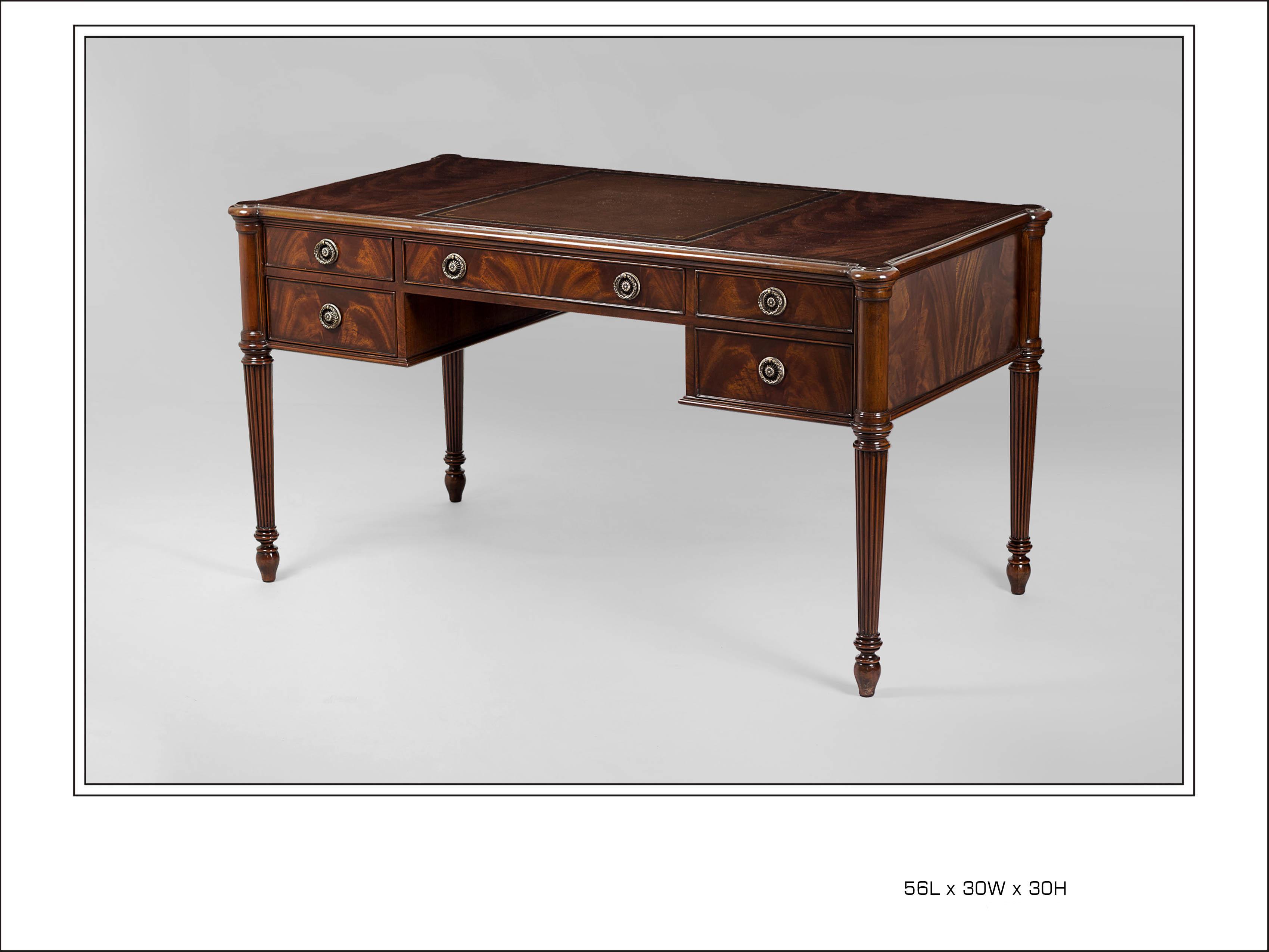 Crotch Mahogany Lady's Desk with Antique Brown Leather Writing Surface and Nickel pulls.