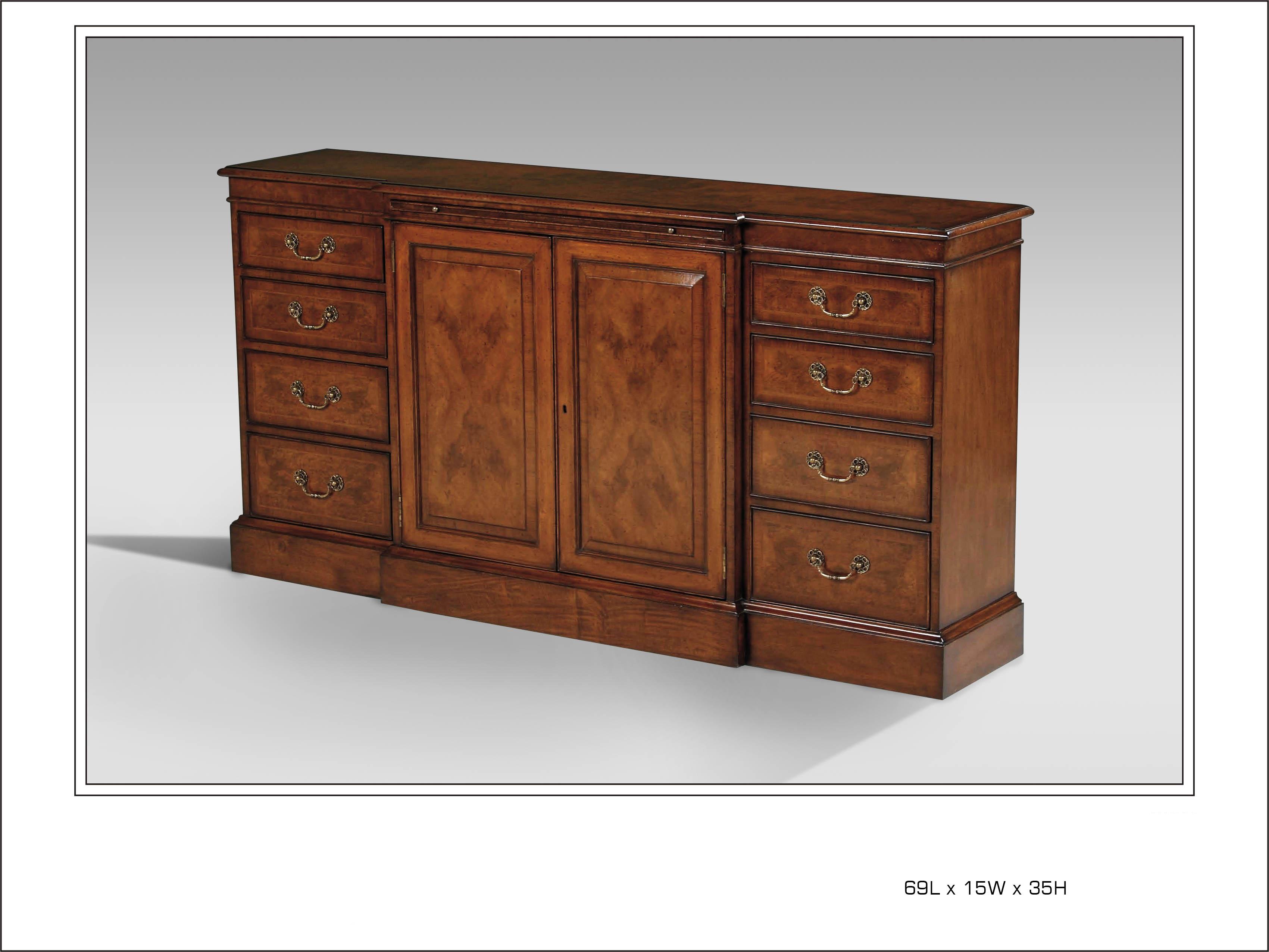 Walnut Sideboard with Center Cutlery Drawer and Pullout Shelf with Brass Handles