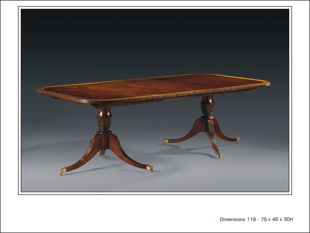 Crotch Mahogany Reeded Dining Table with Movengue Banding with Brass Castors. Two Removable Leafs