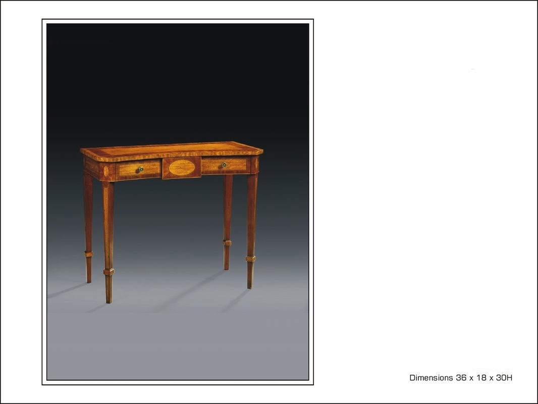 Movengue and Mahogany Console Table with Brass Knobs. Available in Walnut.