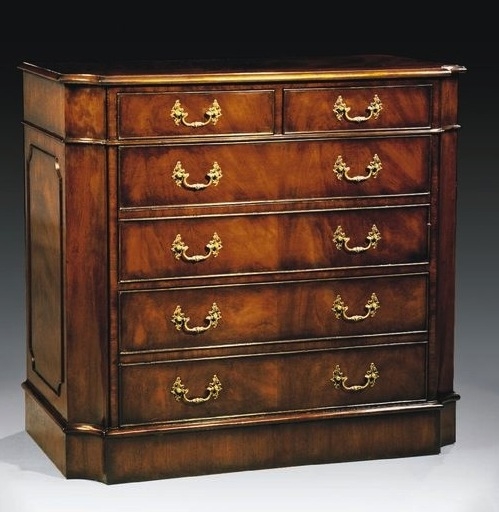 Crotch Mahogany Veneer File Cabinet with Brass Handles and Two Twin File Drawers