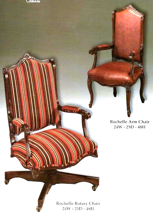 Rochelle hand carved executive chair available in various fabrics and finishes.