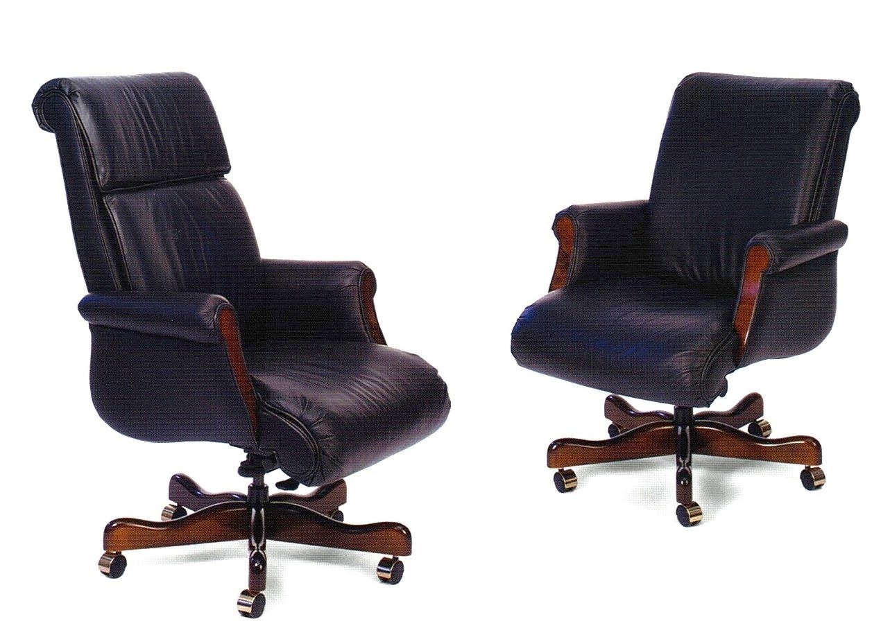High and mid back executive chairs with envelope backs and exposed wood arm caps. Outside: 42.5-45H 28.5W 32.5D Inside: 25.5H 19W 20.25D Seat Height: 17-19.75 Arm Height: 25.5