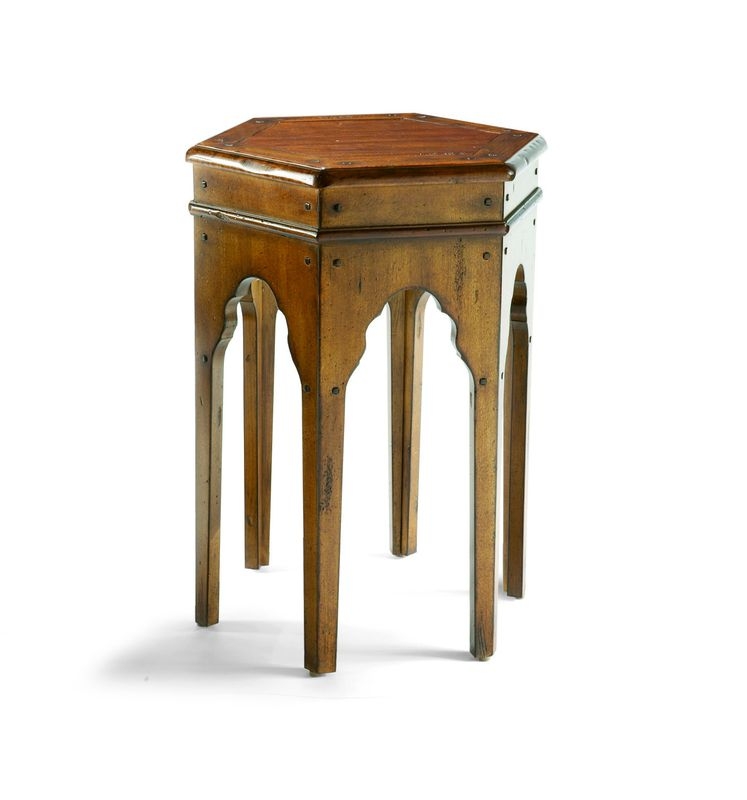 Very unique chairside table with ogives created by the shaped tapered block legs.