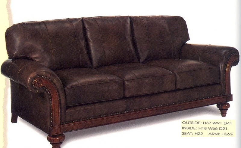 Edwardian style wood trimmed sofa. Available in all our leathers and COM.