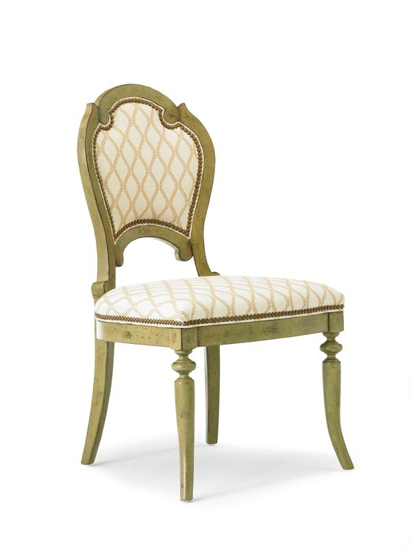 Side chair. Available in various finishes and fabrics.