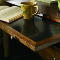 Three drawers with copper surface pull out tray.