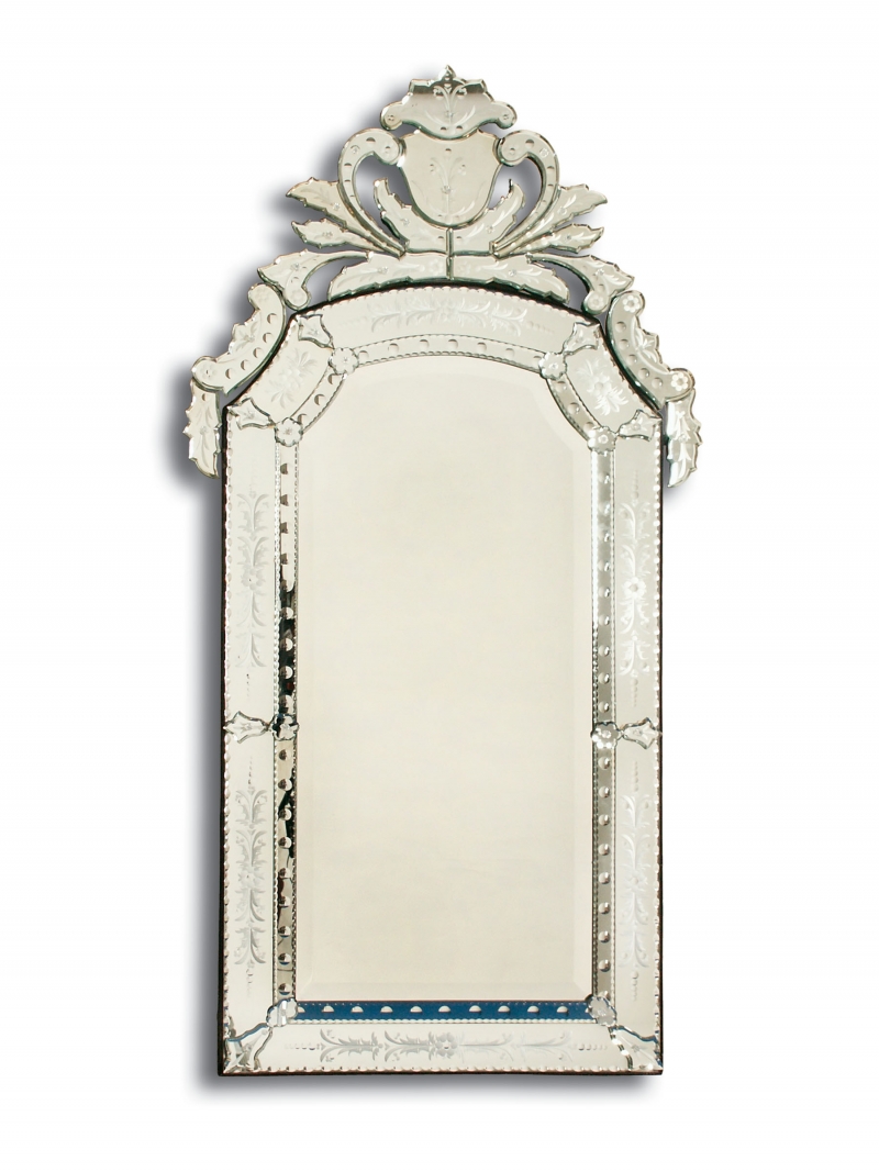 Wheel engraved and cut Venetian mirror with beveled mirror glass.