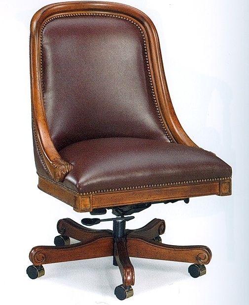 Carved Mahogany armless swivel chair. Small nail-head trim standard with leather/vinyl.