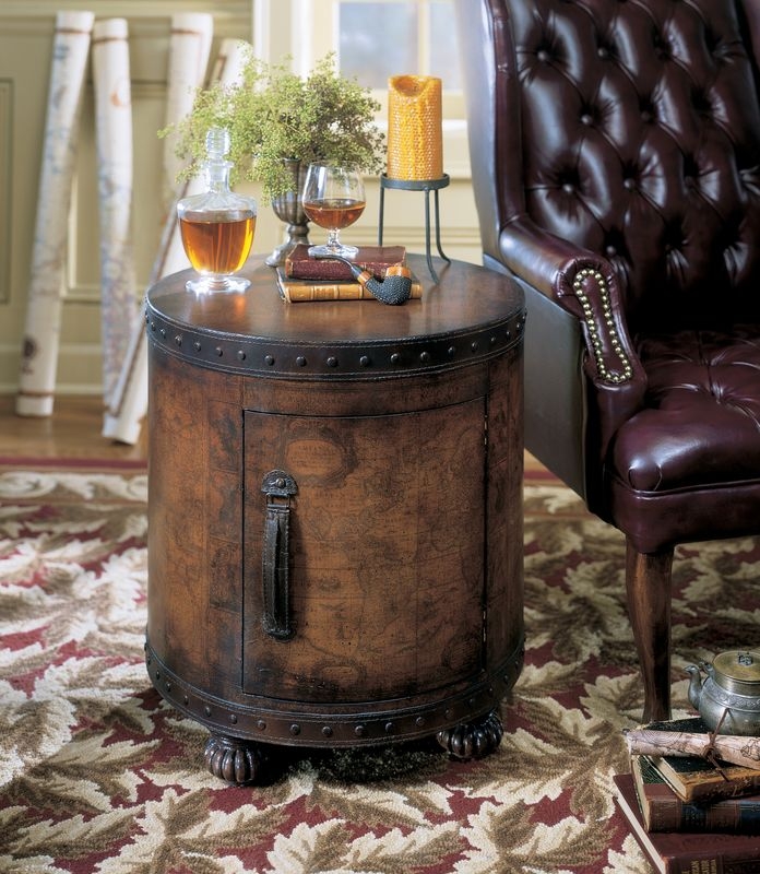 Laminated old world map surface with glaze and lacquer. Storage area with leather handle.