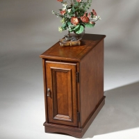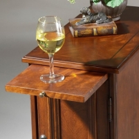 Selected solid woods and choice cherry veneers. Cherry veneer top, pull out tray and paneled door.