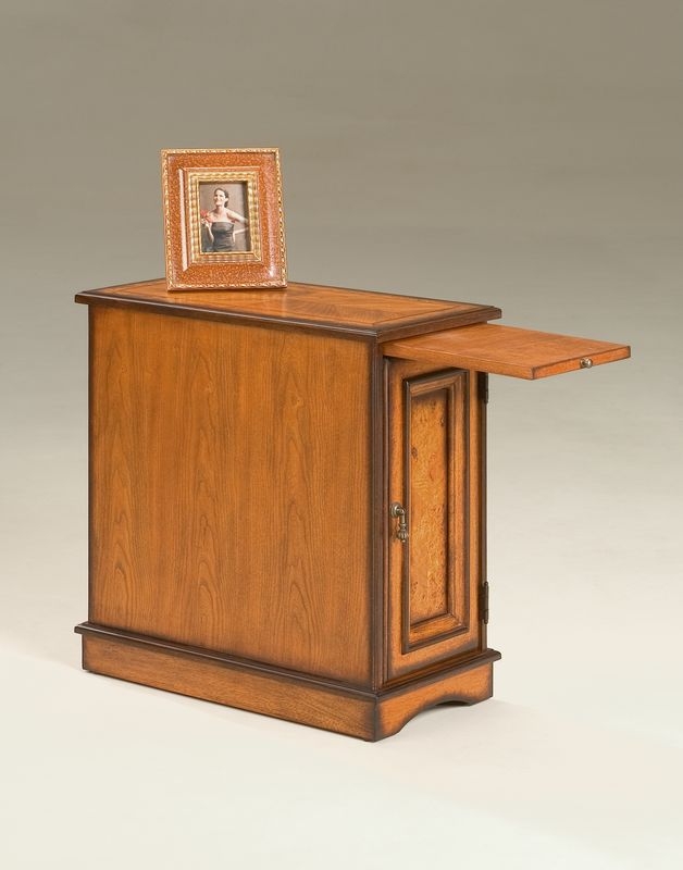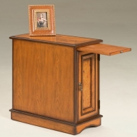 Selected solid woods with choice cherry veneers. Four-way book matched cherry veneer top with inlayed walnut frame. Cherry veneer sides, back panel, and pullout tray.