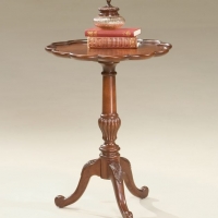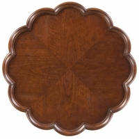 Selected solid woods and choice cherry veneers. Four-way matched cherry veneer top with pie crust frame. Resin appliqués.