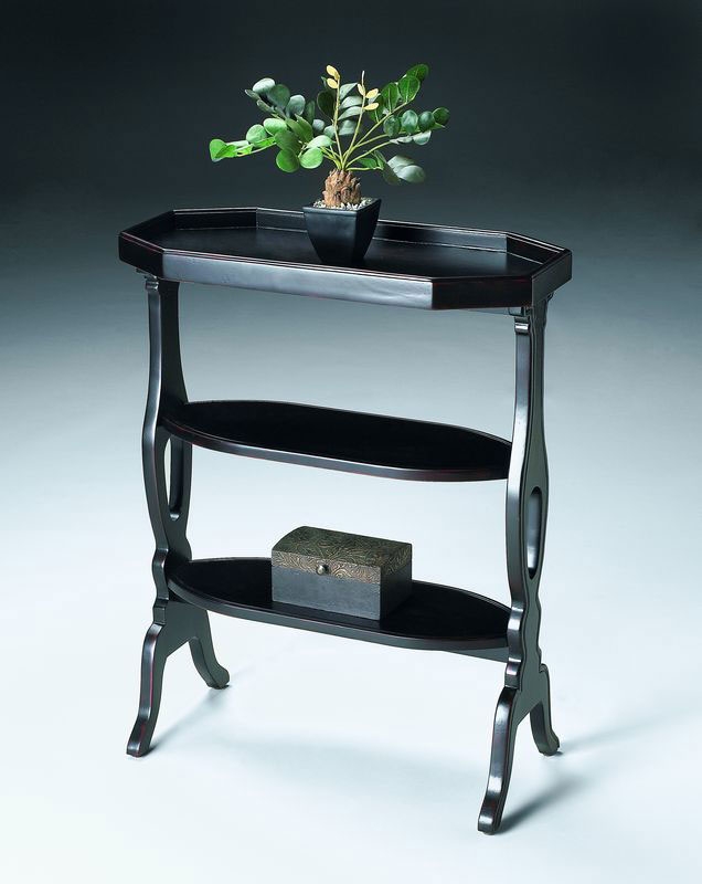 Lightly textured hand painted finish on selected solid woods and choice cherry veneers. Cherry veneer top, middle and lower shelves.
